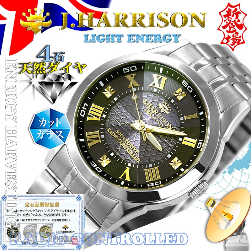 ジョン・ハリソン JH-082A-MGB・4石天然ダイヤモンド付・ソーラー電波時計