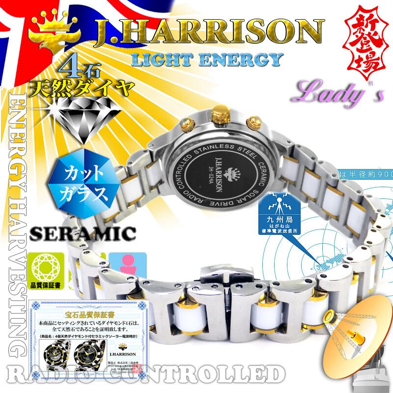 ジョン・ハリソン J.H-024A-LWW 4石天然ダイヤ付・セラミック使用・ソーラー光発電電波婦人用時計