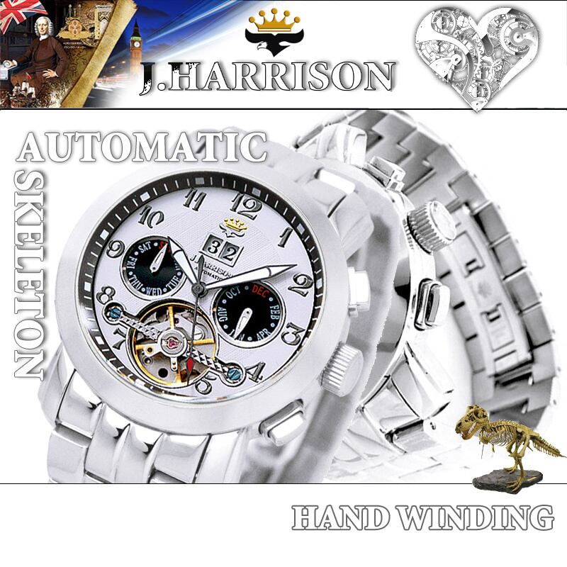 JH-008WB 機械式多機能付ビッグテンプ自動巻&手巻きメンズ腕時計 【送料無料】