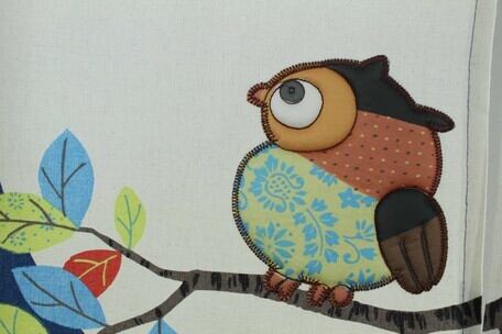 ふくろう部分を大型のアップリケで仕上げています。